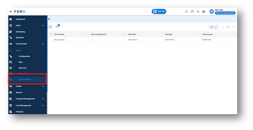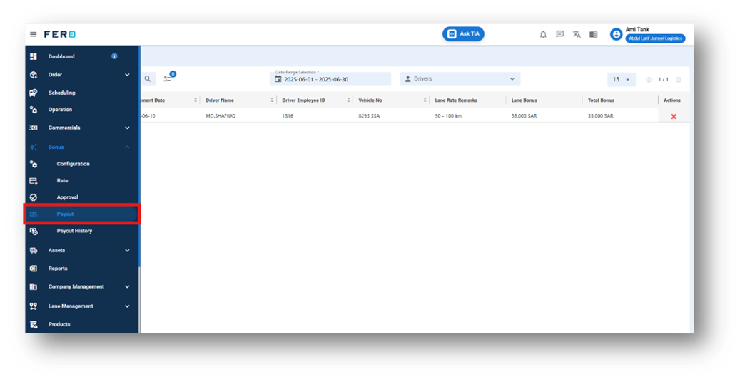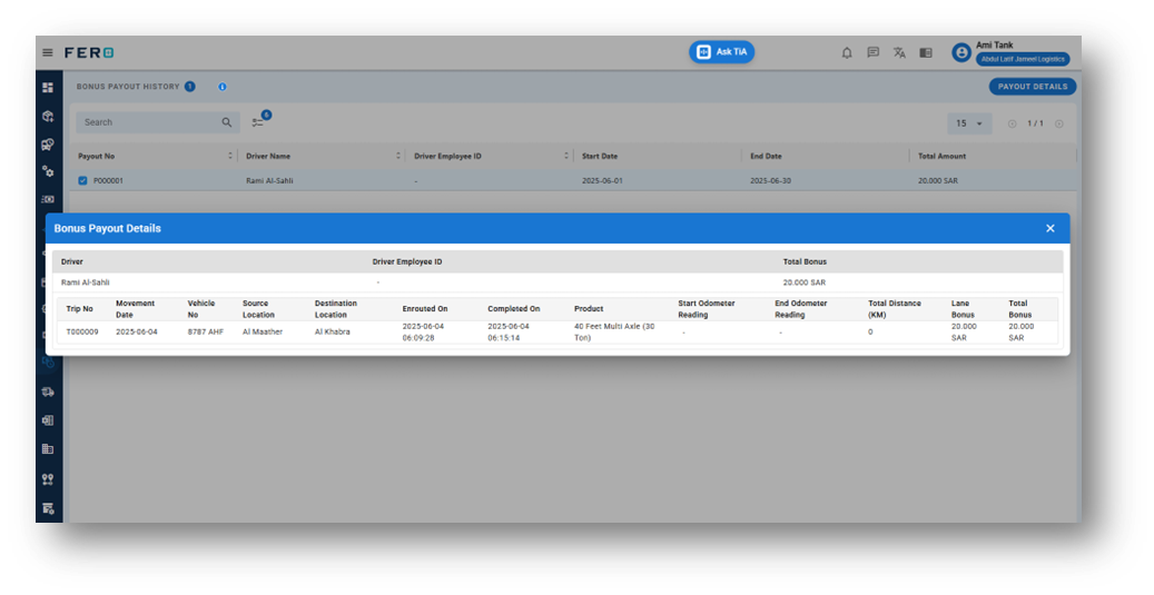 Organizations can now maintain a transparent and organized overview of all bonus payouts through a centralized record system. Each entry captures essential details, including the payout number, driver’s name, employee ID, the defined payout period (start and end dates), and the total amount disbursed. This level of detail not only promotes accountability but also streamlines the tracking and auditing processes, ensuring that bonus disbursements are both accurate and verifiable.