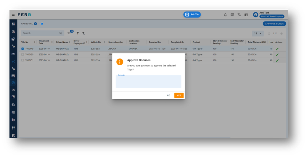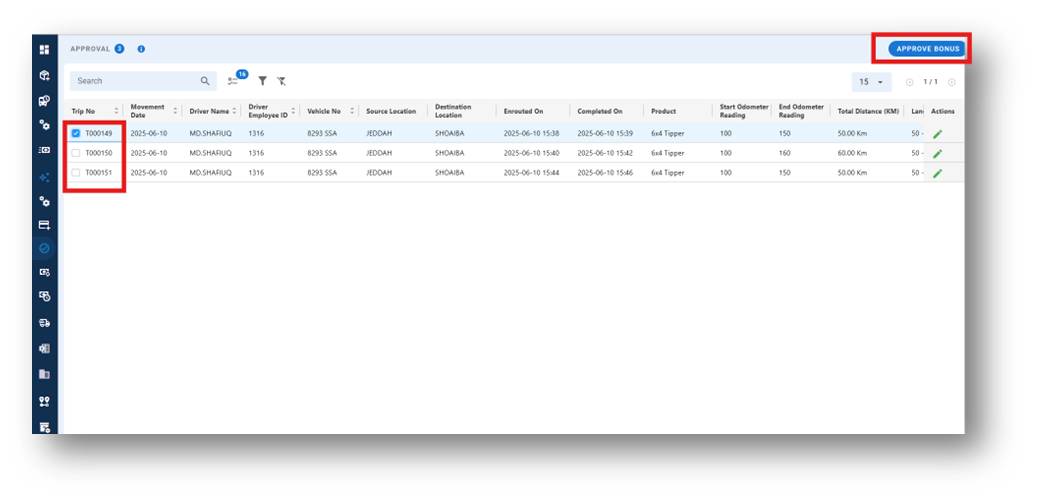 The Driver Bonus Module is designed to incentivize drivers based on the total kilometers (KM) traveled during a defined performance period. This module ensures fair and performance-driven compensation, encouraging consistent productivity and efficient driving practices.