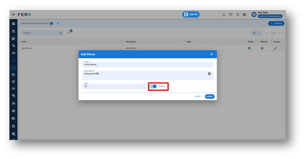 The Lane-Based Bonus Incentive Module enables targeted performance rewards based on the efficiency and consistency of operations within predefined lanes. By linking bonus eligibility to specific routes, this system encourages drivers to meet performance benchmarks tailored to each lane's unique operational demands.