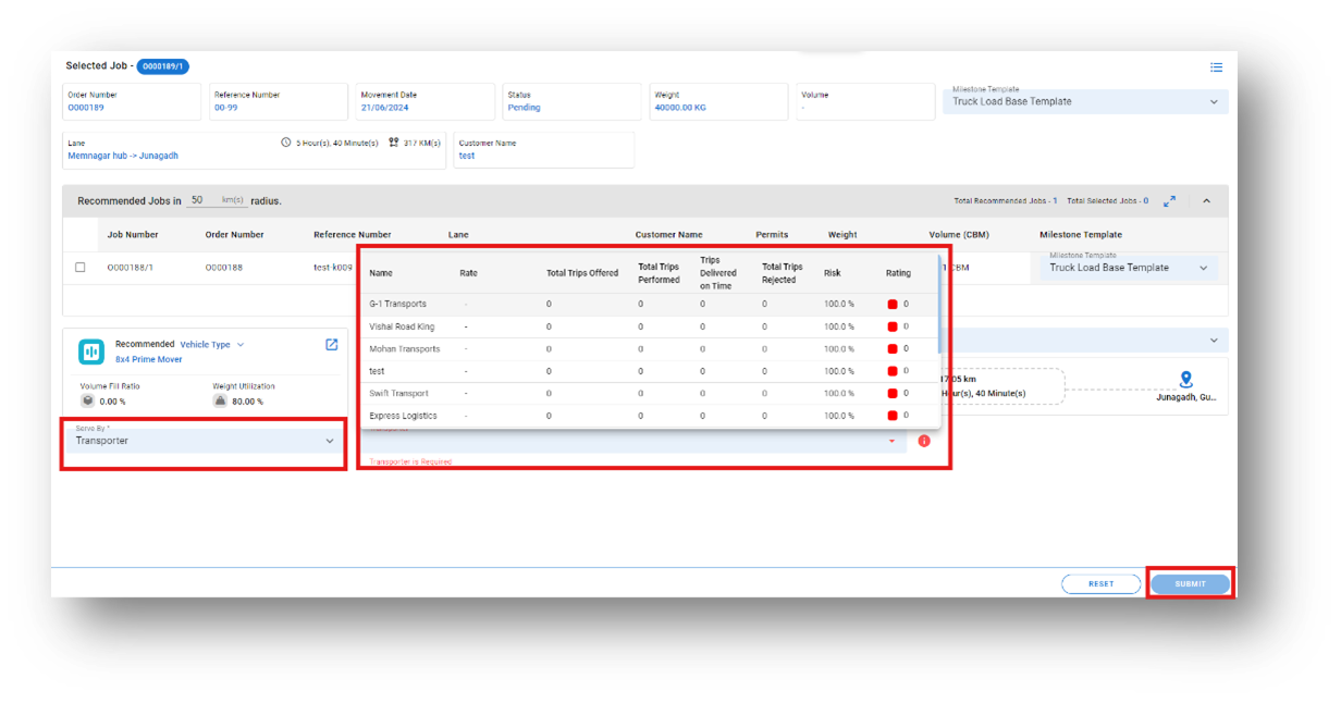 After filling in all these details, click "Submit" to add your transporter lane rate.