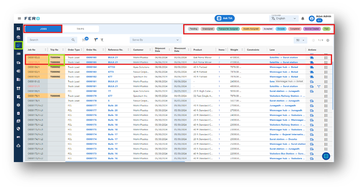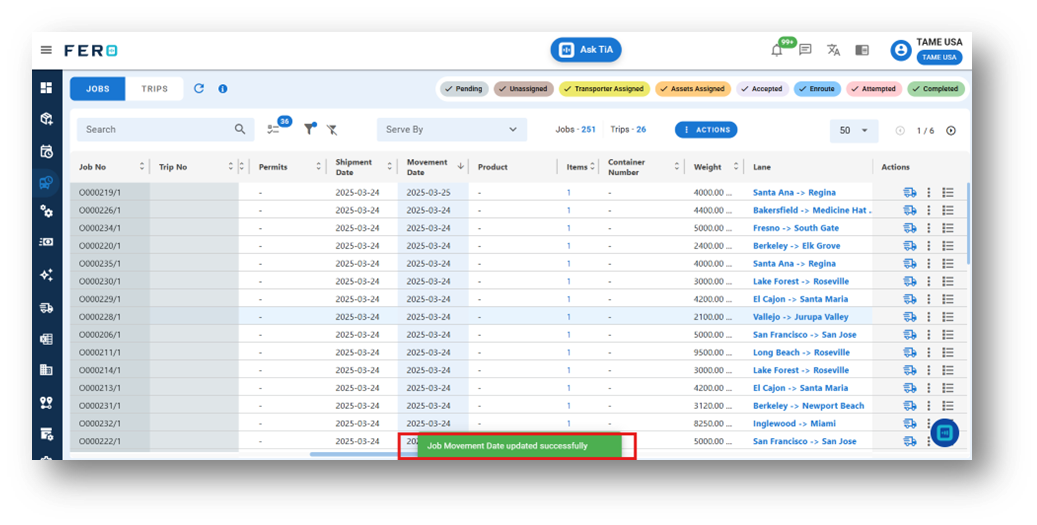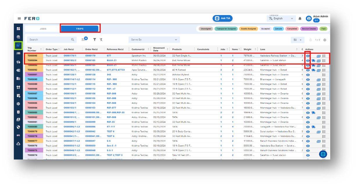 Step 5: Once you allocate the asset, the system will automatically update the status of the order based on the allocation. Additionally, a trip number will be created for that order, facilitating further tracking and management.