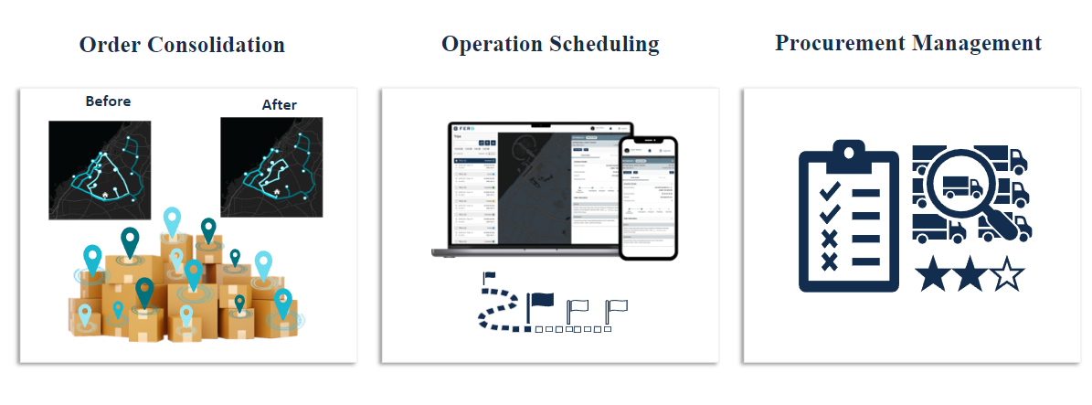 - Operation Scheduler: AI-powered scheduling with recommendation features manages large-scale freight schedules with complex constraints and numerous variables, efficiently coordinating multiple resources, locations, and processes.