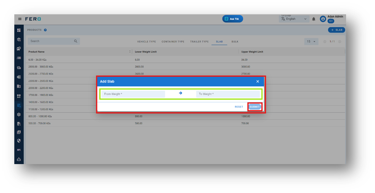 After filling out these fields, click the "Submit" button. Your weight slab will be added to the system, facilitating accurate price calculations based on item weight.
