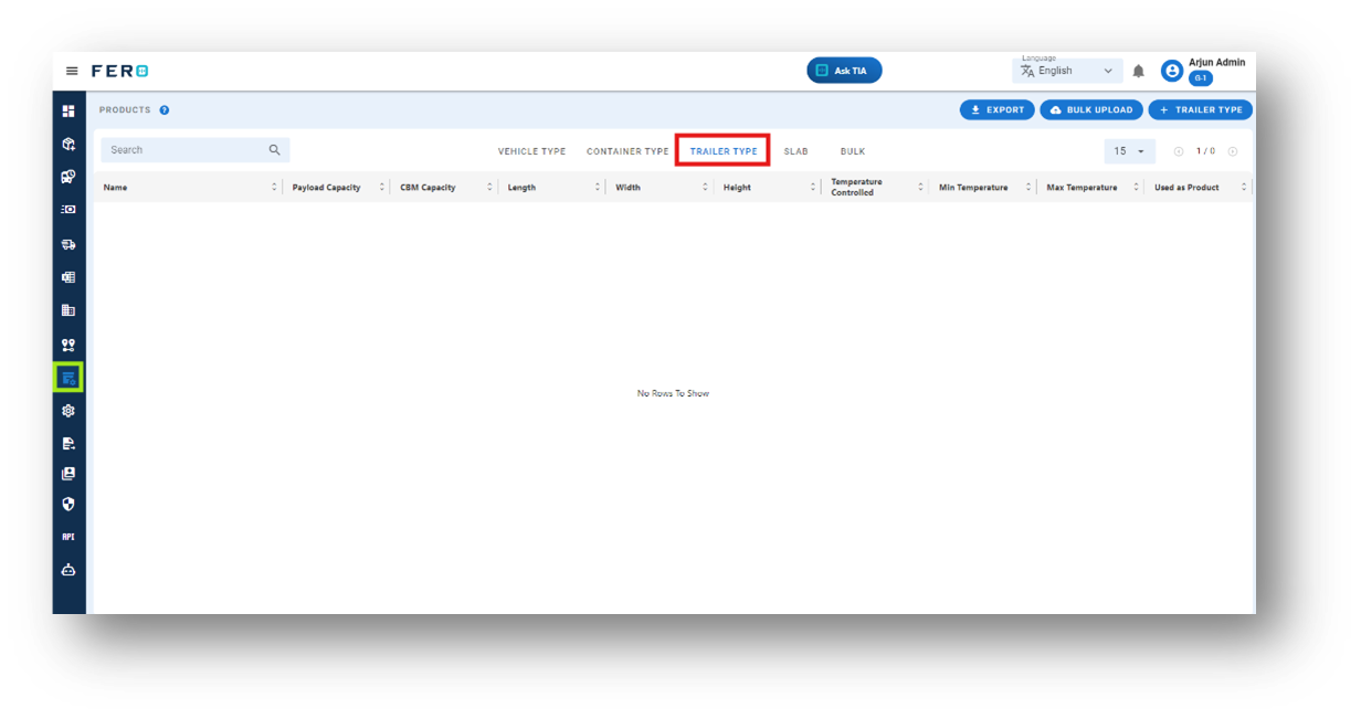 The Trailer Type module allows you to define and manage the various types of Trailers used for transporting items. Within this module, you will specify the name of each Trailer, along with detailed information about its dimensions and payload capacity. This ensures that all transportation movements are efficiently organized and accurately tracked.