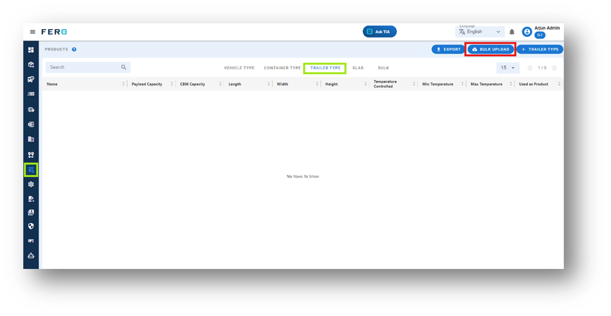 Yes, you can bulk upload Trailer type. This method is the easiest and fastest way to add various container types. To do this, navigate to the bulk upload option, download the sample file, enter the details into the sample file, and upload the document. All the Trailer types will be added within seconds.