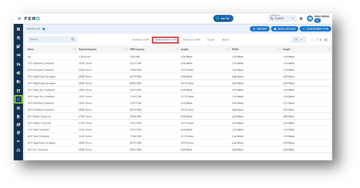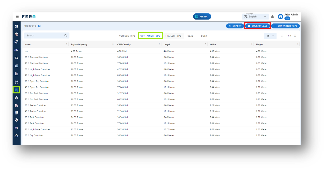 Yes, you can bulk upload container types. This method is the easiest and fastest way to add various container types. To do this, navigate to the bulk upload option, download the sample file, enter the details into the sample file, and upload the document. All the container types will be added within seconds.