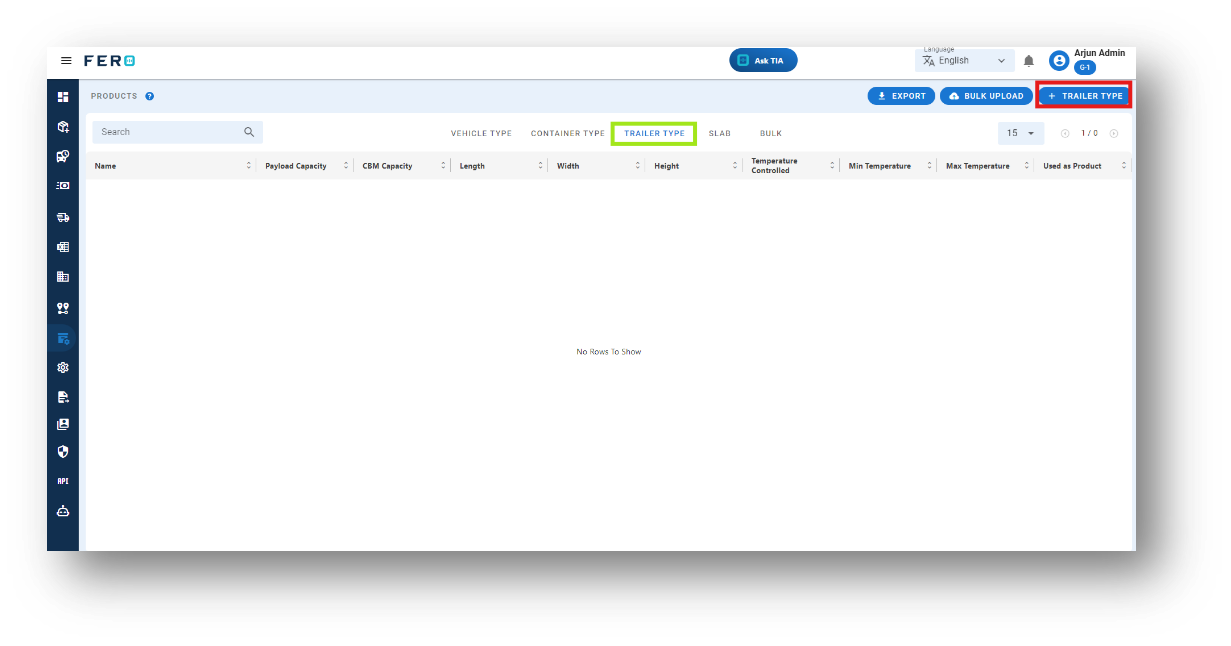 Step 3: Select the "Add Trailer Type " option to initiate the process of adding a Trailer Type. A pop-up screen will appear.