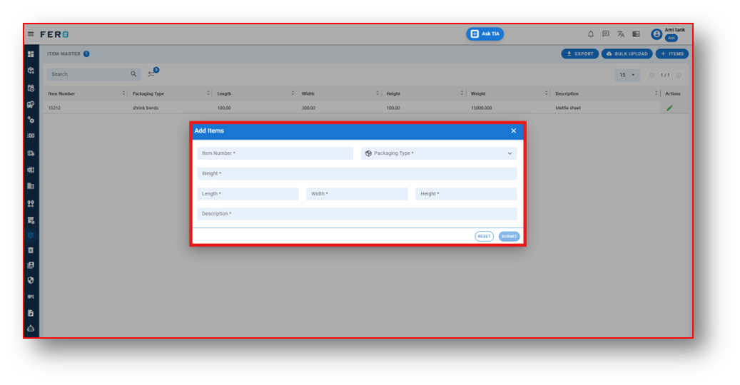 Add item details, including dimensions, weight, and packaging type, Simplifies inventory and shipment planning.