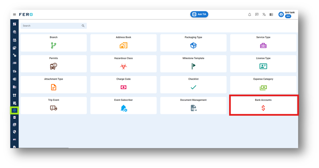 Step 2: Choose the Bank account option from the Configuration homepage.