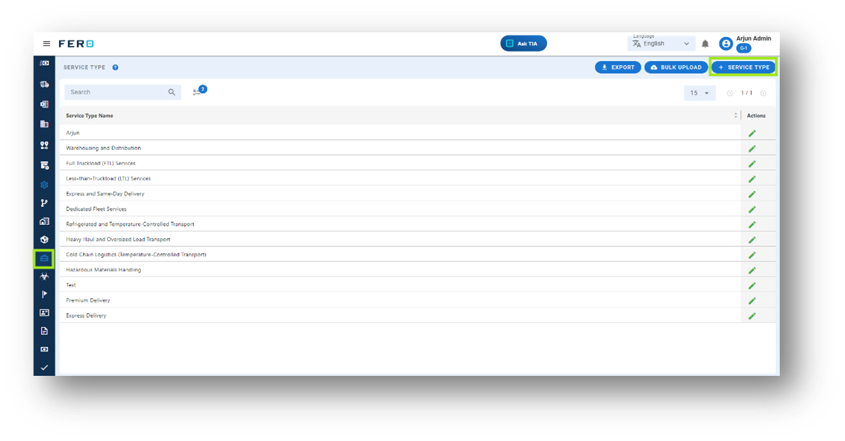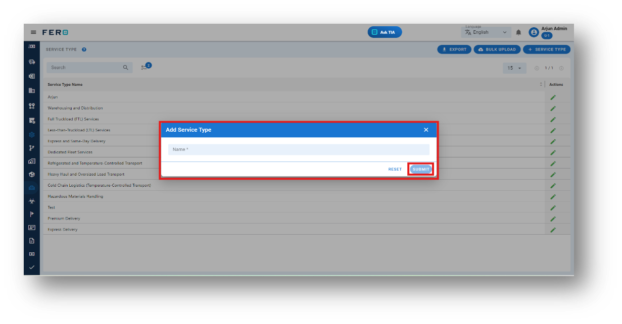 Step 4: Fill out the Service type name and click the submit button. Your Service type will be included in the Service module.