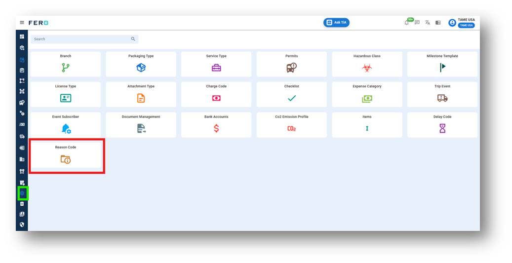 Step 2: Choose the Reason Code option from the Configuration homepage.