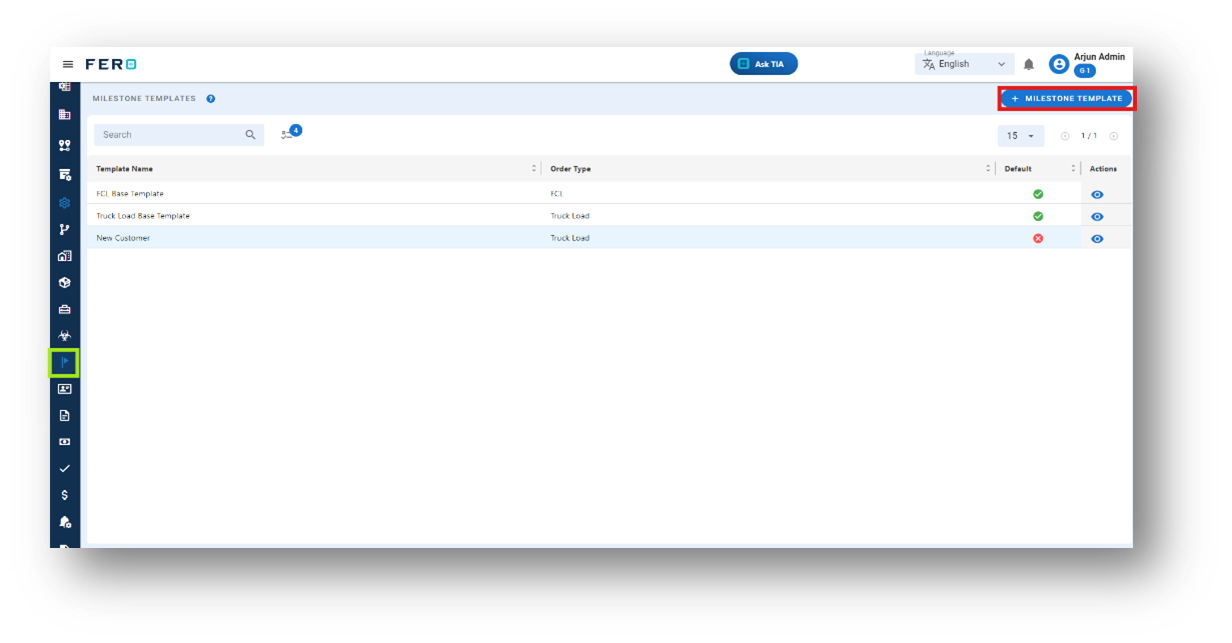 Step 1: Open the Milestone Template module. You will see a list of all milestone templates.