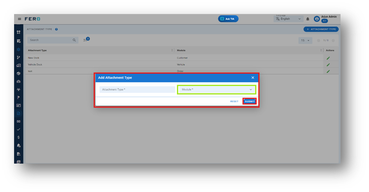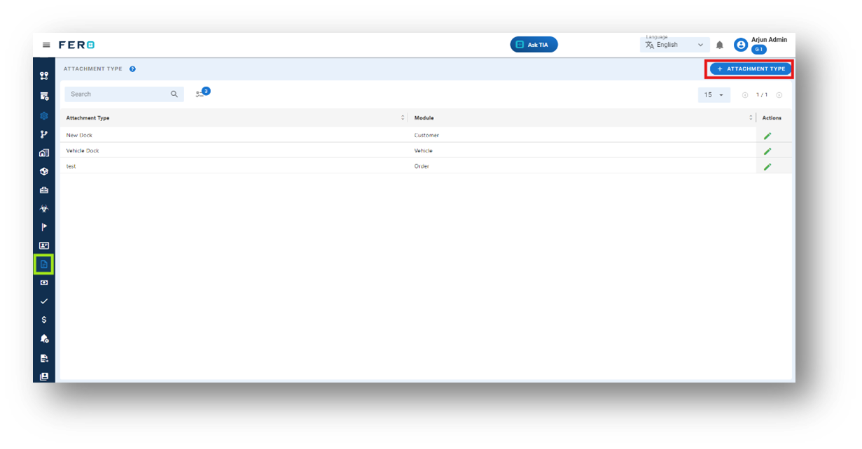 Step 3: Select the "Add Attachment types " option to initiate the Attachment types of creation process.