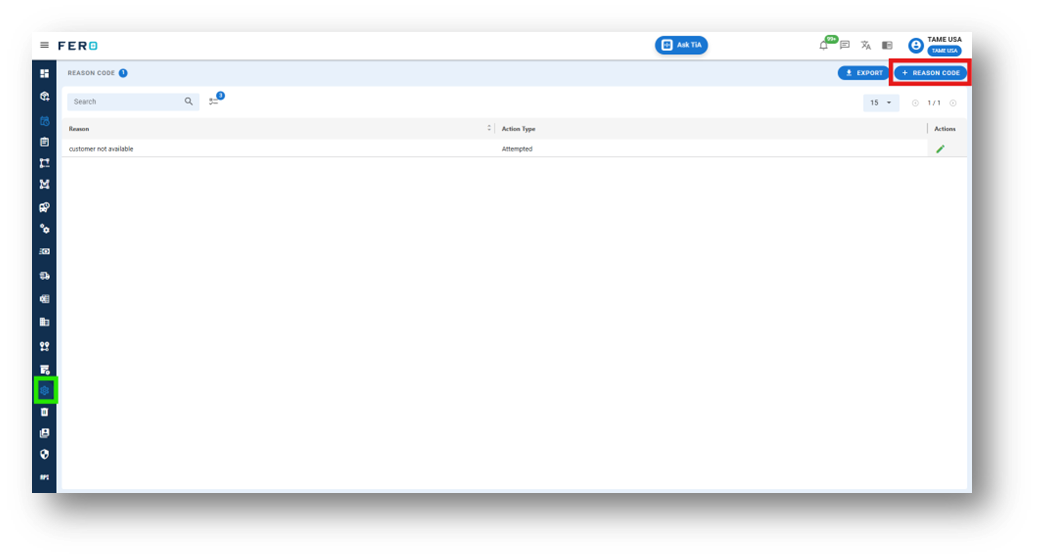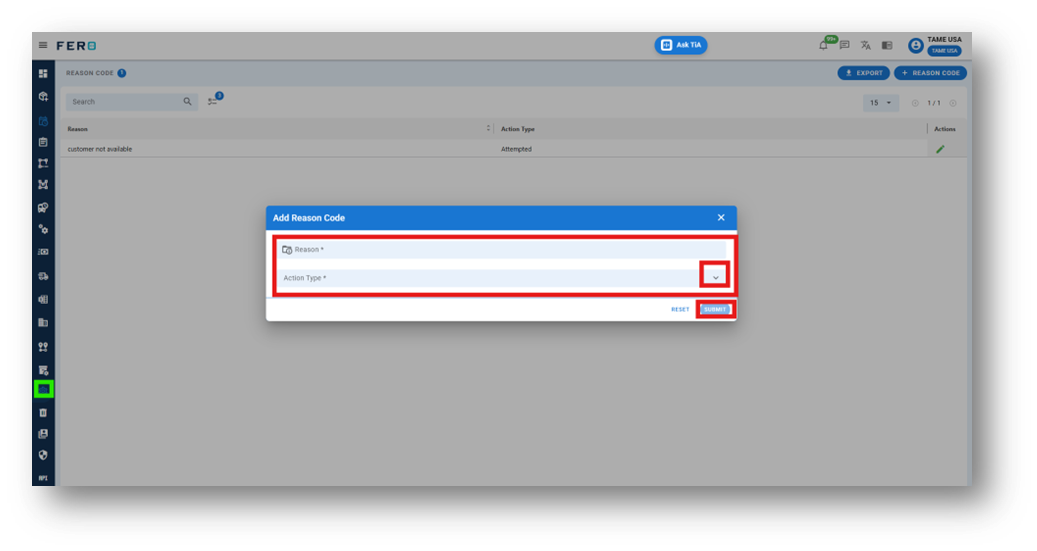 Step 3: Select the " Add Reason Code " option to initiate the reason code’s creation process.