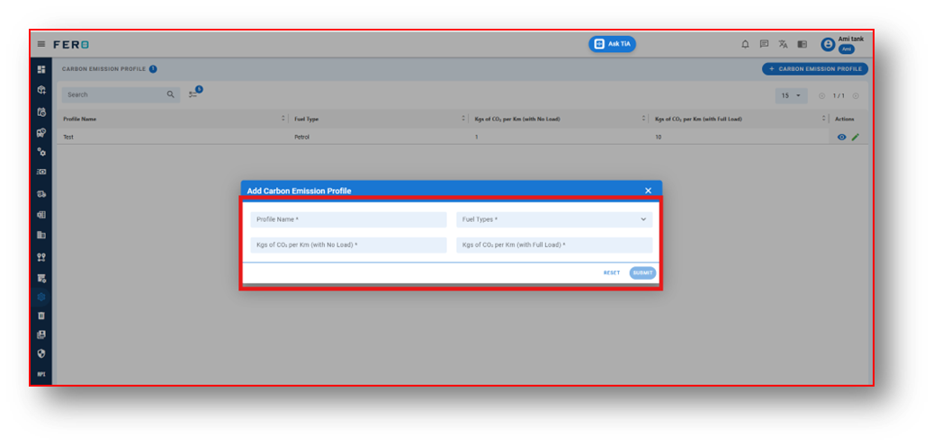 carbon emission profile Manage CO2 emissions data, Add and organize carbon emission profiles by vehicle type Supports sustainability initiatives.