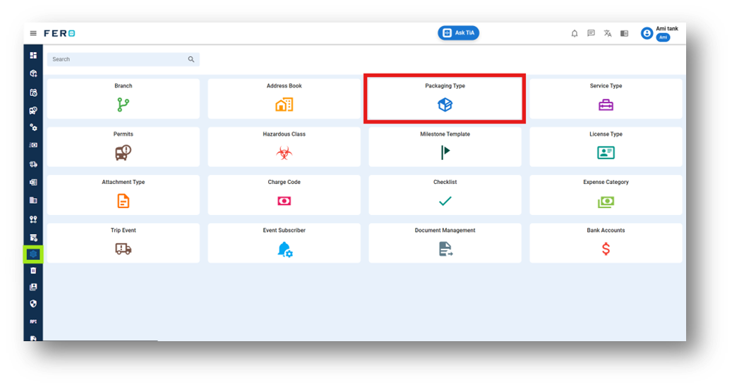 Step 3: Select the "Add Packaging type" option to initiate the packaging type creation process.