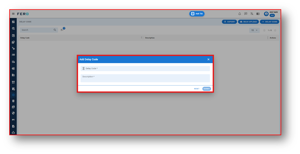 Yes, you can bulk upload Delay Codes. This method is the easiest and fastest way to add various Delay Codes. To do this, navigate to the bulk upload option, download the sample file, enter the details into the sample file, and upload the document. All the Delay Code will be added within seconds.