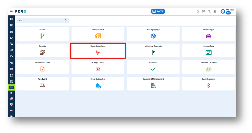 Step 3: Select the "Add Hazards class " option to initiate the Hazards class creation process.