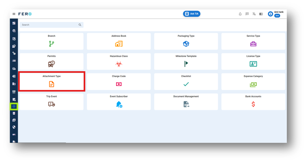 Step 2: Choose the Attachment types option from the Configuration homepage.