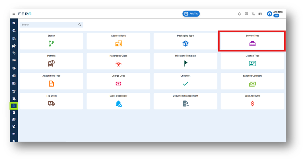 Step 2: Choose the Service type option from the drop-down list to access the Service Type homepage.
